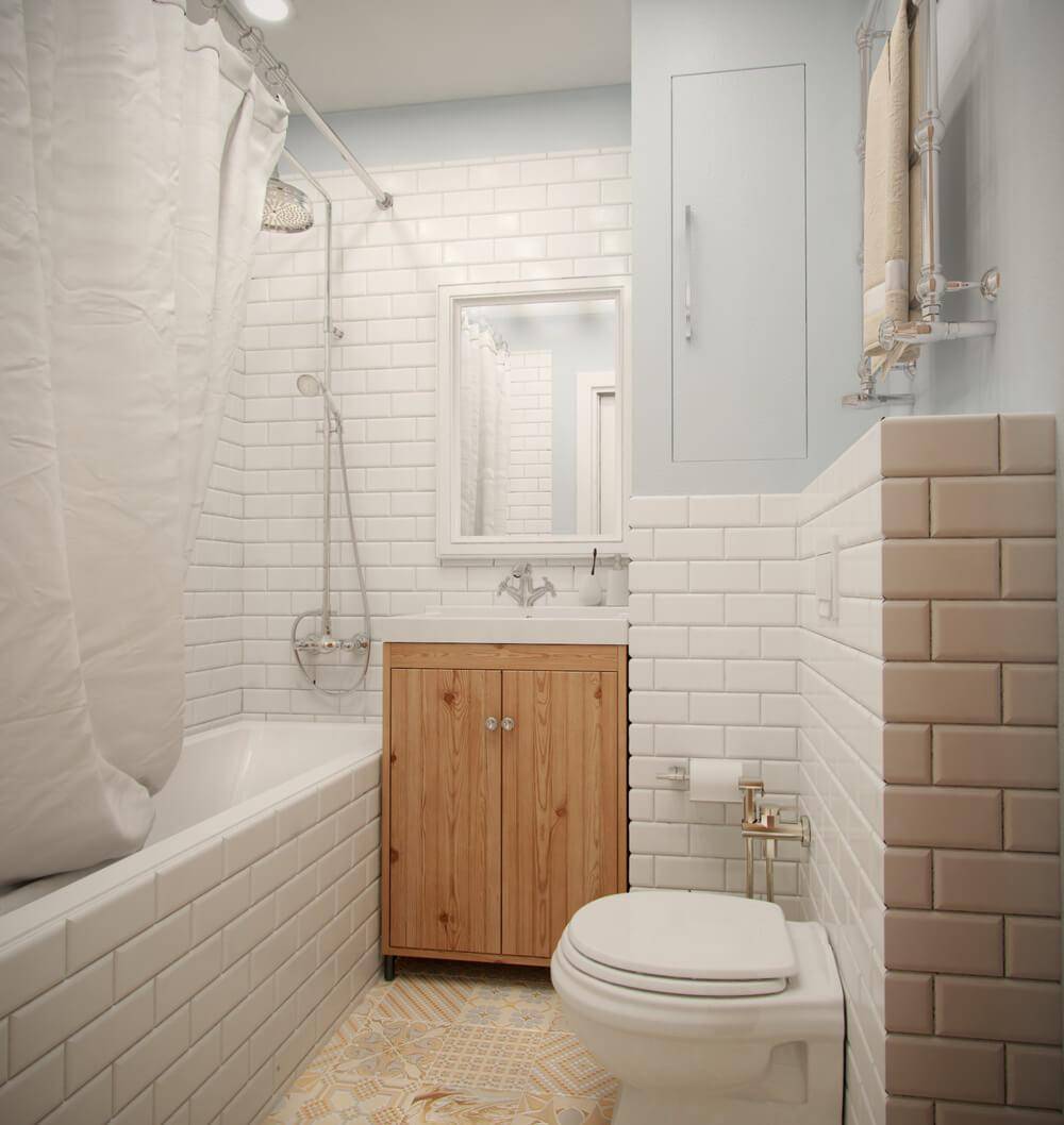Первым делом необходимо определиться с местоположением наиболее габаритных предметов . Так как обустроить ванну в стеснённом пространстве в хрущевке или в деревянном доме можно лишь вдоль стены, следует исходить именно из этой особенности.