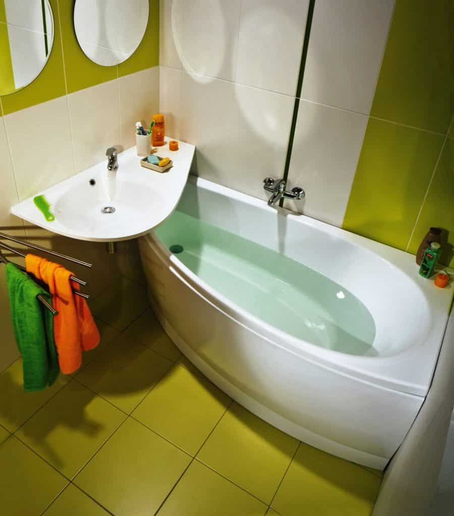 Сама же ванная совсем необязательно должна иметь прямоугольную форму. Для наибольшей эффективности использования пространства можно приобрести не очень большую угловую конструкцию, как в случае с душевой кабиной. Некоторые ванны предусматривают свободное пространство снизу, которое тоже может быть практичным. Можно, например, закрыть боковую часть ванной фасадом в виде пластиковых панелей своими руками и сделать их распашными.