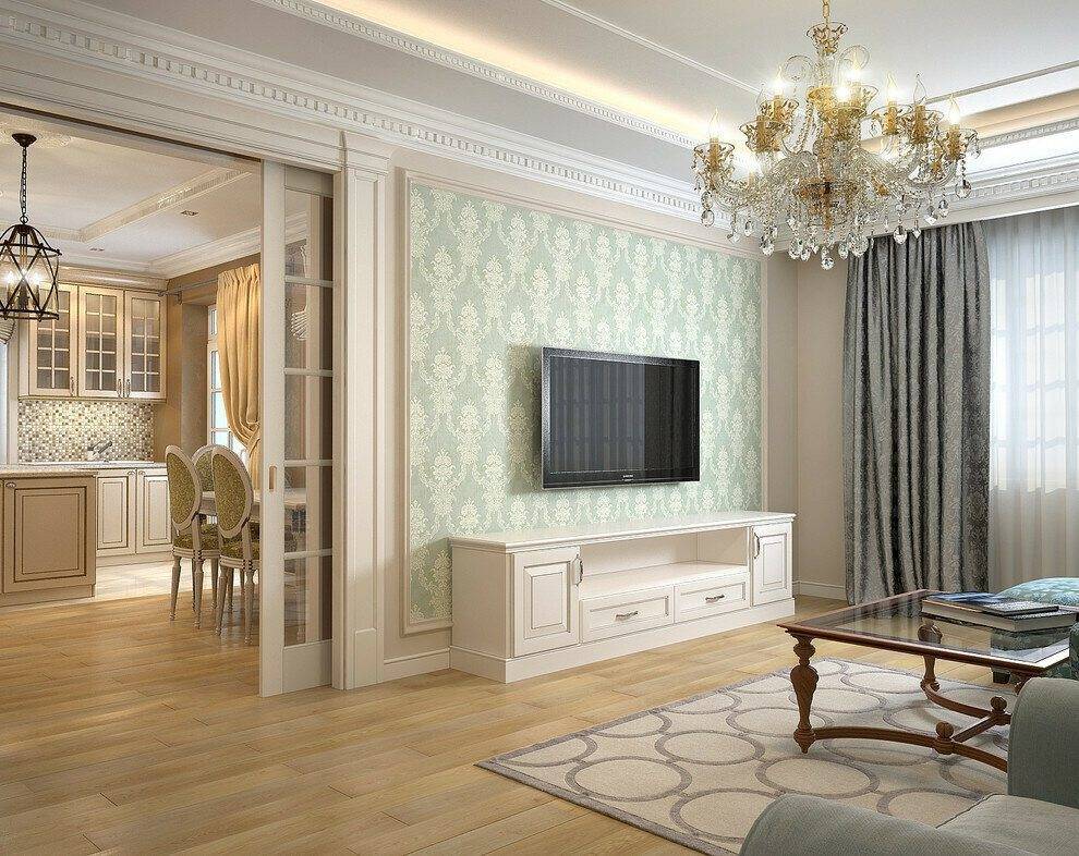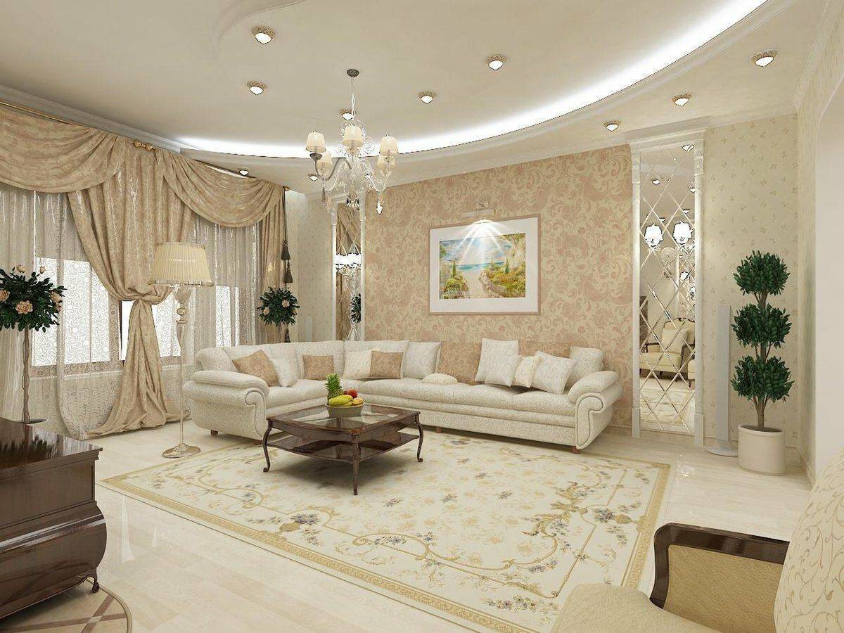 Идеальные исходные данные комнаты — простор, высокие потолки, правильная форма. Небольшие залы тоже оформляют в классическом стиле, правда работы будет гораздо больше.
