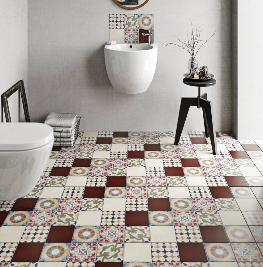 Одно из самых современных и необычных решений – выбор плитки в стиле пэчворк. В этом случае она состоит из отдельных элементов, имеющих различный рисунок или размер, что позволяет создать эффект лоскутного одеяла. Для того чтобы добиться этого эффекта, совсем необязательно приобретать специальные наборы, которые обычно имеют немалую стоимость. Вполне возможно использовать для этого несколько отдельных видов плитки, которые хорошо сочетаются между собой.