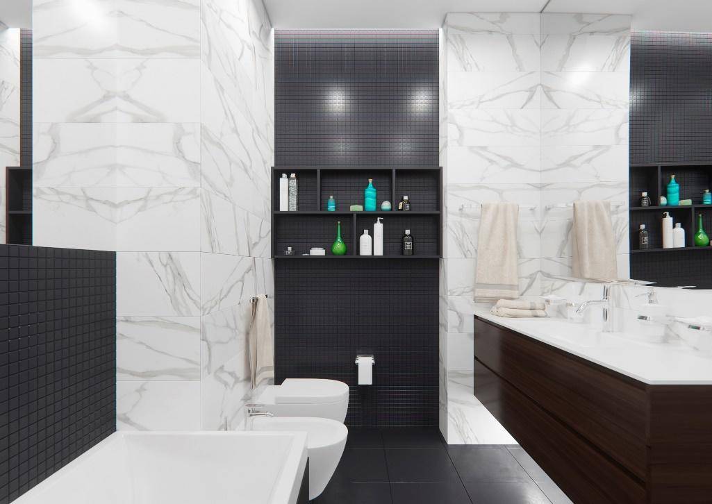 При выборе стиля учитываются не только вкусы заказчиков, но и размеры санузла. Так, для маленького помещения подходят минимализм, скандинавский стиль и хай-тек, для просторного – классика или лофт. Если комната больше 10 м 2 , подумайте о привлечении специалиста: зияющее пустотой пространство ничем не лучше захламленного интерьера.
