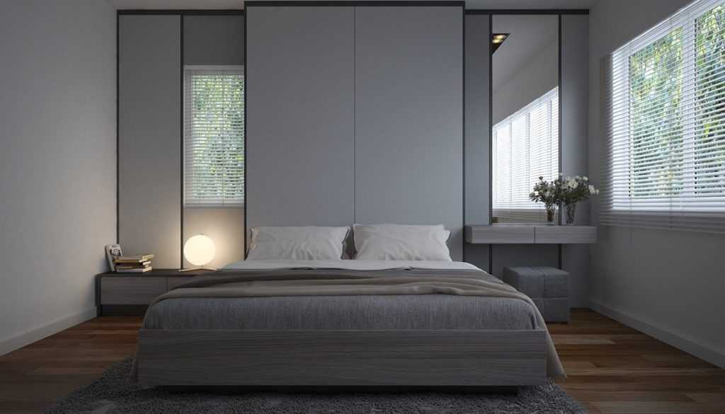При большой загруженности в повседневной жизни, место отдыха должно максимально способствовать расслаблению и отдыху. В этом случае спальня в стиле минимализм является лучшим вариантом. Минимальное количество функциональной мебели, серо-черные цвета с ярким акцентом не загружают пространство и делают его комфортным.