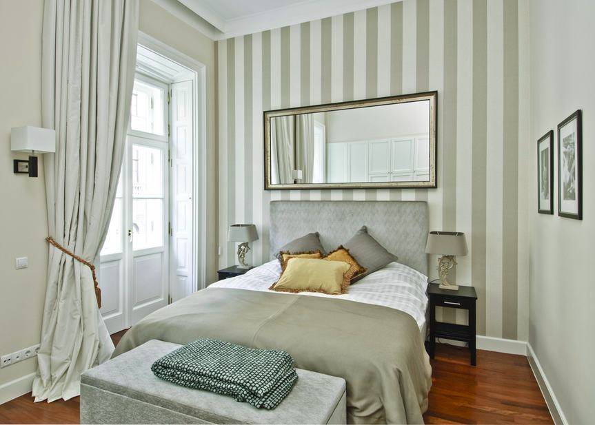 Самым подходящим материалом для отделки спальни в классическом стиле считают натуральную древесину. Некоторые дизайнеры используют для украшения комнаты зеркала и вставки из стекла.
