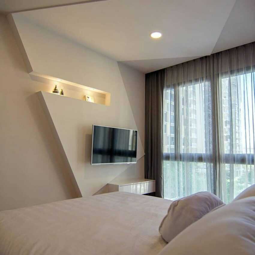 Неотъемлемой составляющей таких интерьеров выступает современная техника. В спальне это может быть большая плазма.