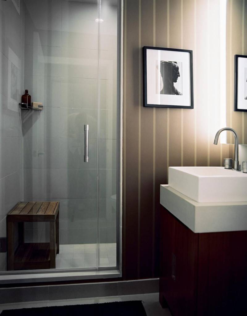 Стиль минимализм предпочитает высококачественные отделочные материалы, особенно красиво будут смотреться элементы декора выполненные из натурального камня, металла и стекла. Минималистичный интерьер – оптимальный выбор для маленькой ванной комнаты – ведь этот стиль, как никакой другой, идеально подходит для небольшой городской квартиры. Главная его особенность заключается в простоте. Ценные породы древесины, модные люстры и светильники, серебряные или позолоченные краны, гламурные ручки дверей и шкафов – могут стать главным акцентом авторского интерьера.