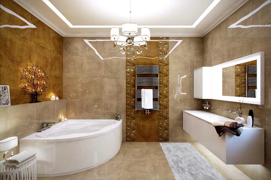 Угловая ванна хороша для классического стиля, минималистичного, стилей лофт и модерн. Они популярны и применимы повсюду – и в небольших помещениях, и в более просторных.