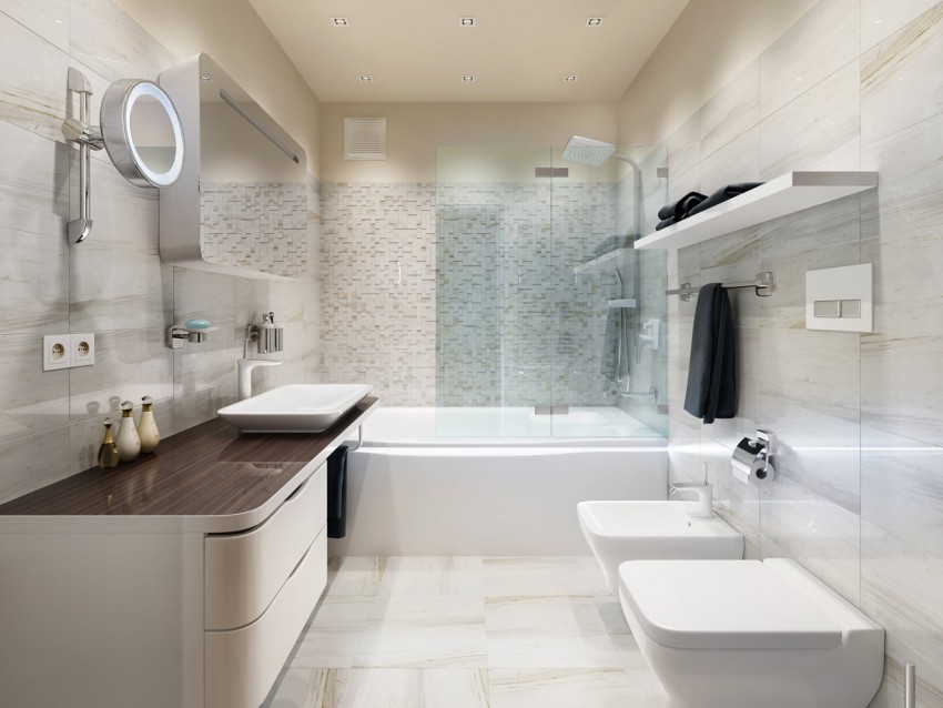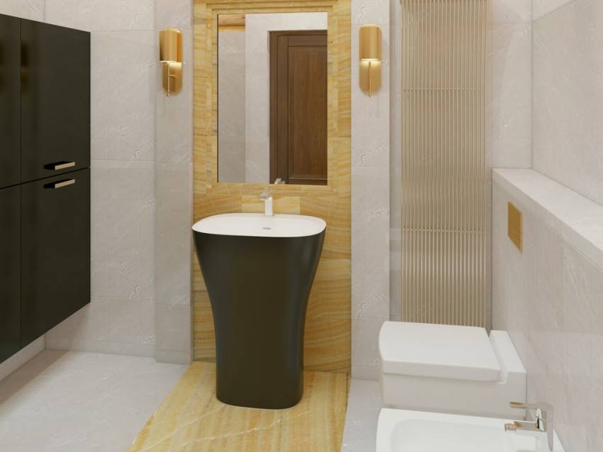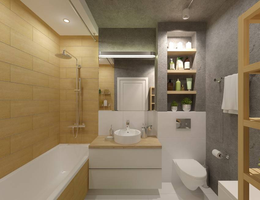 В правильной обстановке легче расслабляться и настроиться. Современный, этнический стиль подходит для отдыха. Материалы для отделки, сантехника (ванны, унитазы, сушильные и стиральные машины) и аксессуары должны быть выбраны в общем стиле. Не заставляйте ванную комнату большим количеством мелких безделушек, они разрушают общее впечатление от полного восприятия комнаты. Используйте визуальные приемы расширения пространства. Известно, что светлые тона усиливают, темные наоборот. Для дизайна ванной комнаты площадью 3 кв. м. желательно выбрать согревающие оттенки, такие как желтый или песочный оттенок. Классический вариант естественно белый всегда является приоритетным. Входная дверь должна раскрываться изнутри, это поможет задействовать всю освободившуюся площадь. Неплохим вариант — станет раздвижная часть перегородки с зеркальным покрытием. Сделать совмещенный санузел больше, помогут керамические плиточные поверхности разных размеров. поднять визуально в высоту потолок смогут вытянутые фигуры на открытых частях стены и фрагменты небольшой мозаики. Большие плитки, а также части отшлифованного камня с фотопечатью, помогут, стать украшением одной из стен ванной. Для таких целей подходят панорамные виды на побережье или город