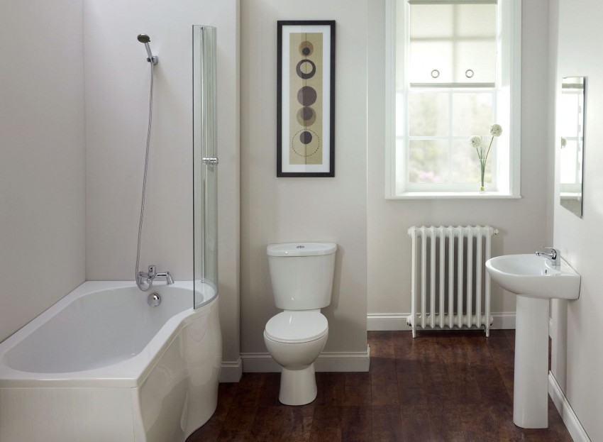 В маленькой ванной комнате лучше поставить душевую кабинку, она занимает меньше места
