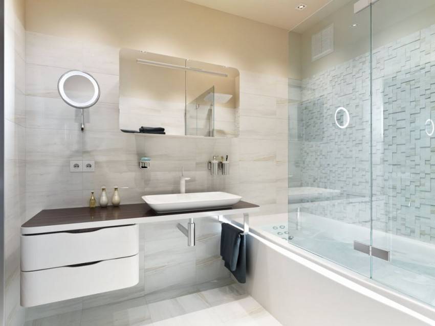 - Где будет располагаться зеркало, ведь, многие привыкли смотреть на свое отражение во время мытья рук или элементарного бритья. Возможно, придется ограничиться маленьким поворотным зеркалом, закрепленным где-то сбоку.