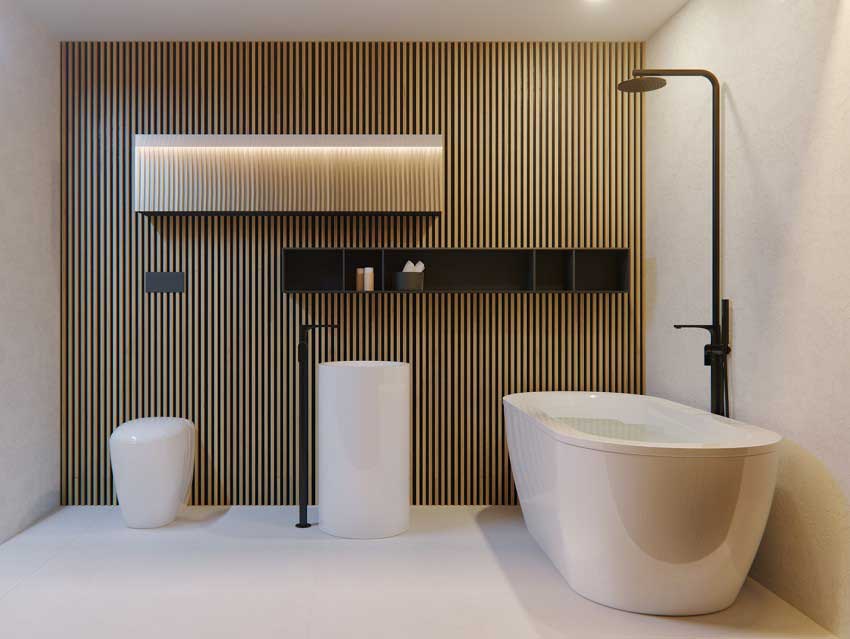 Особенно красиво будет сочетаться белая ванная с элементами дерева
