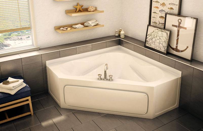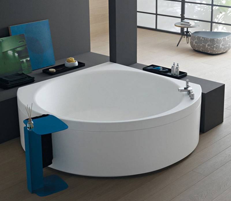 Дизайнеры утверждают, что угловые ванны – идеальный вариант для небольших по метражу комнат для принятия гигиенических процедур. Обычная сантехника попросту может загромоздить помещение, а душевая кабина не заменит полноценный отдых в купели.