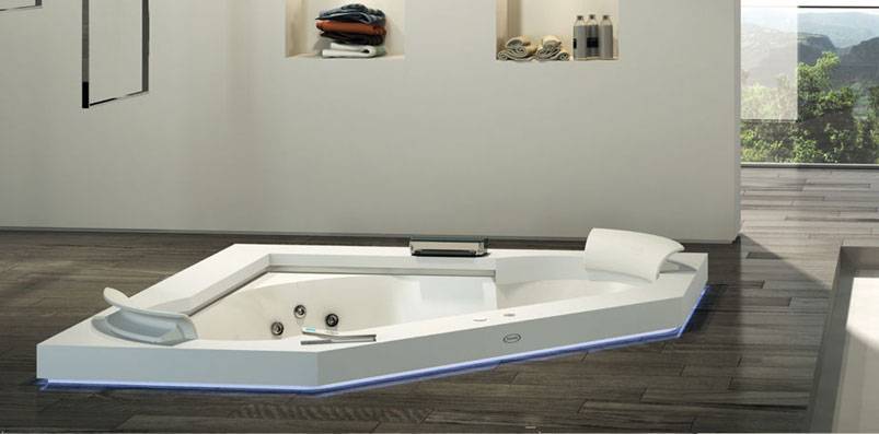 Большие размеры позволяют принимать ванну не только в положении сидя, но и полулежа. Возможны варианты, когда ванну принимают сразу два человека.