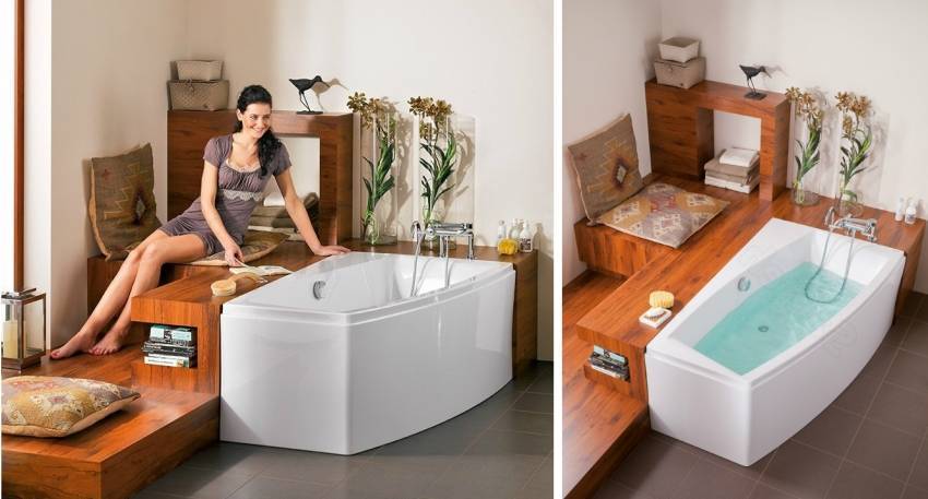 Полезный совет! Для небольших помещений рекомендуется устанавливать асиметричную ванну, благодаря которой удастся выгодно использовать свободное пространство.