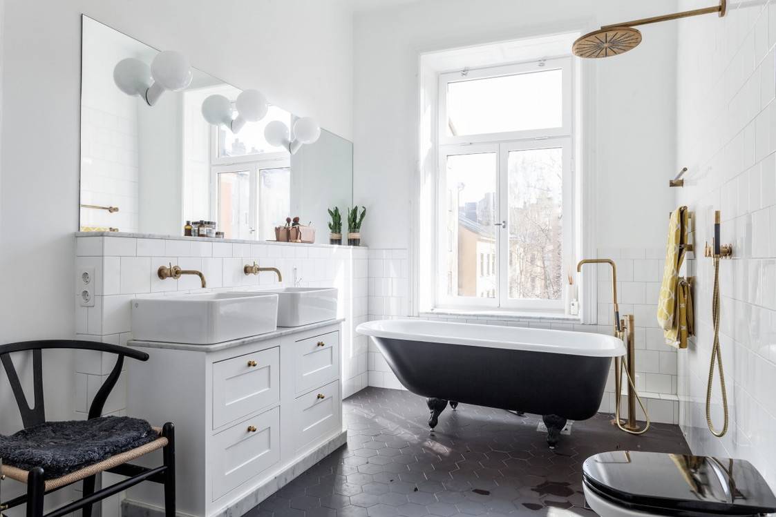 В классических стилях дизайна всем нравится белый свет, но не вздумайте использовать белую затирку для плитки в совмещённой с туалетом ванной. Эта комната слишком нагружена, а белая затирка быстро пачкается и теряет внешний вид. Про выбор цвета затирки для плитки.