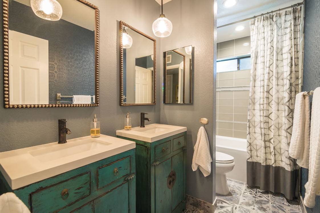 Еще один интересный ход – даже в небольшом пространстве визуально выделять разные зоны. С этой функцией отлично справляется плитка. Времена, когда всю ванную комнату “закатывали” в один вид отделки, давно прошли. Нам открыто широкое поле для экспериментов!