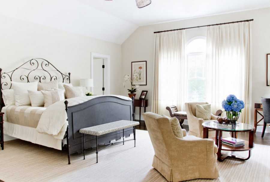 Если это белая классическая спальня, то допустимо использовать бежевые и кремовые оттенки. К выбору черного цвета необходимо подходить аккуратно — можно получить излишнюю мрачность.