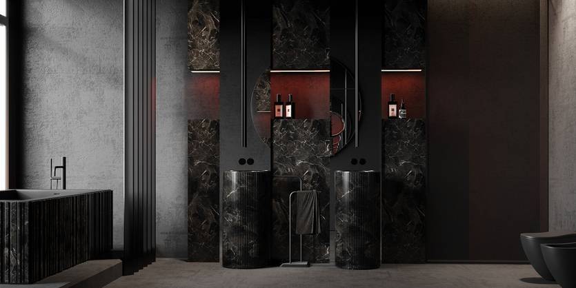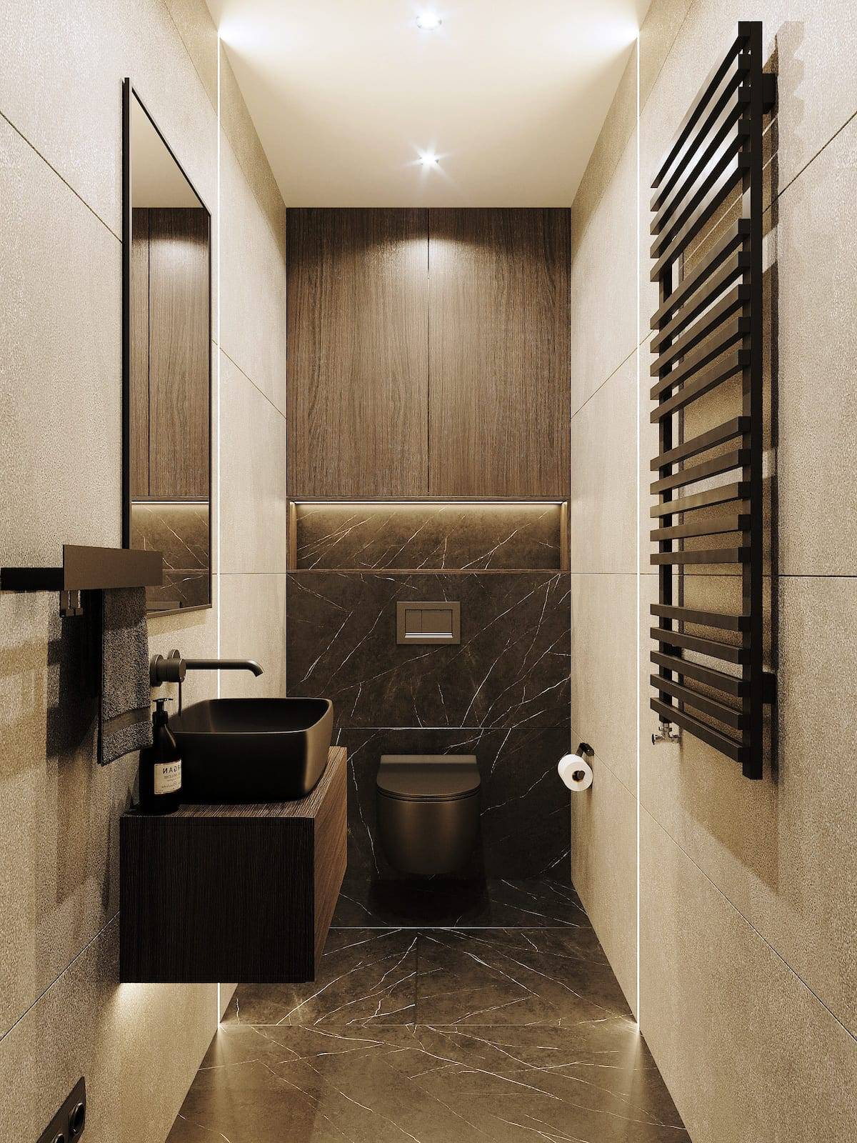 Самый смелый тренд в этой категории — тотально черные ванные. Впрочем, у санузлов, решенных в белом с оттенками серого разной теплоты и светлоты тоже большие перспективы.