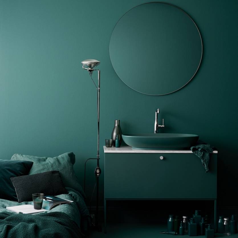 Собрать отделку, керамику, мебель, ванну и полотенцесушитель в едином цвете — непростая задача, но игра стоит свеч: такие сочетания выглядят эффектно и инстаграмно, а сейчас среди главных трендов года. По такому же принципу можно оформить тотально белую ванну — это проще.