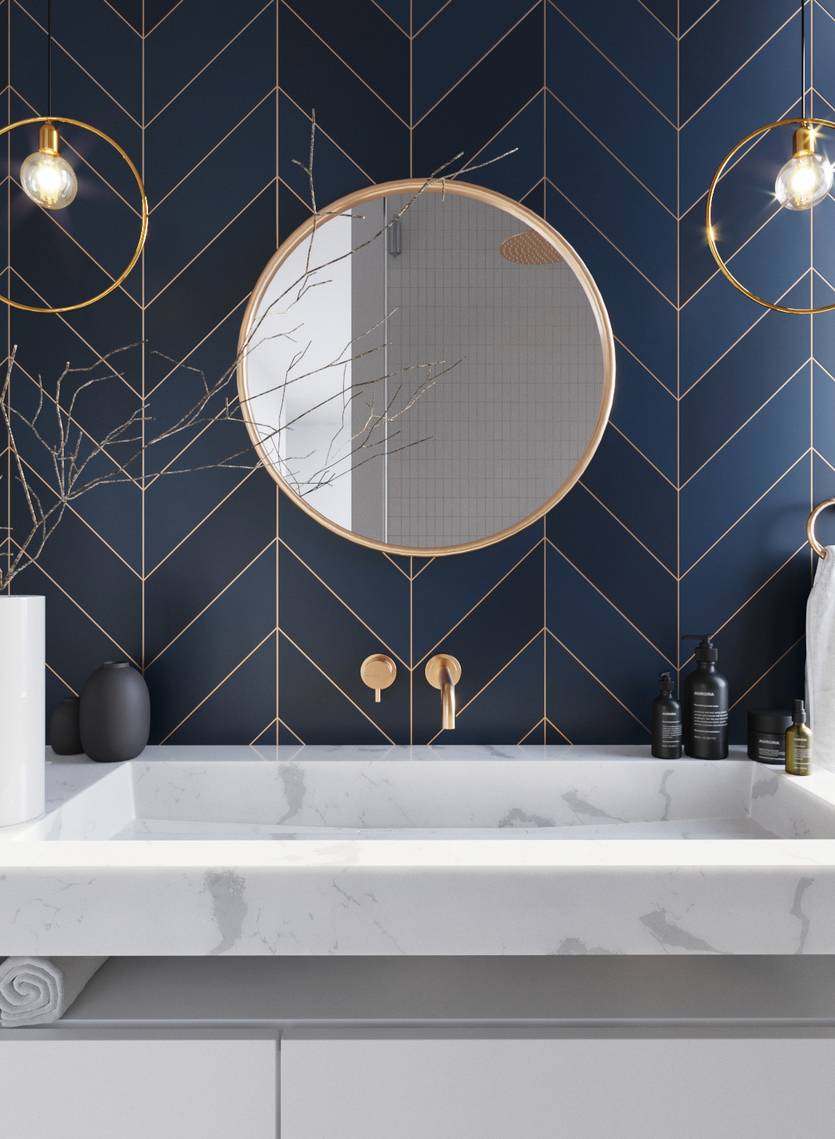 Они должны быть сложными, контрастными, небанальными. Тренд касается не только отделки: производители сантехоборудования настойчиво предлагают забыть в 2020-м году о белой керамике и мебели, заменив ее цветными изделиями. Если прием кажется пока рискованным, можно подобрать яркую плитку с затиркой контрастного цвета, а все остальное оставить нейтральным.