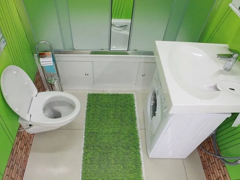 При ограниченном бюджете рекомендуется использовать экономичные предложения, например, фото- или моющиеся обои, пластик. Светлые тона визуально расширят маленькое помещение, текстиль создаст неуместное впечатление загруженности, но коврик будет уместен с точки зрения дизайна и из соображений безопасности и удобства. В целях гигиеничности лучше использовать легко моющийся, не собирающий пыль и загрязнения, с вырезом для стоячего унитаза или прямоугольный нужного размера.