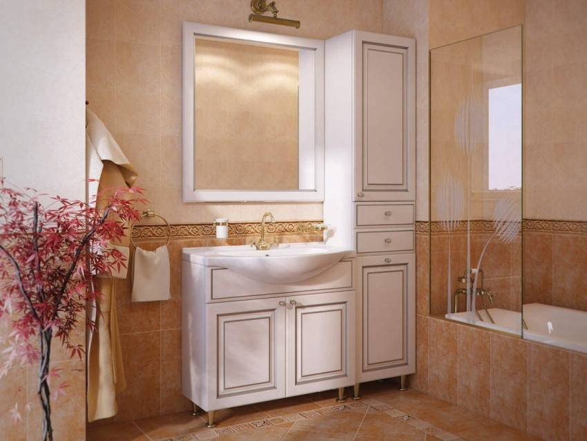 - шкаф — пенал, тумба, раковина, настенный шкаф с зеркалом;