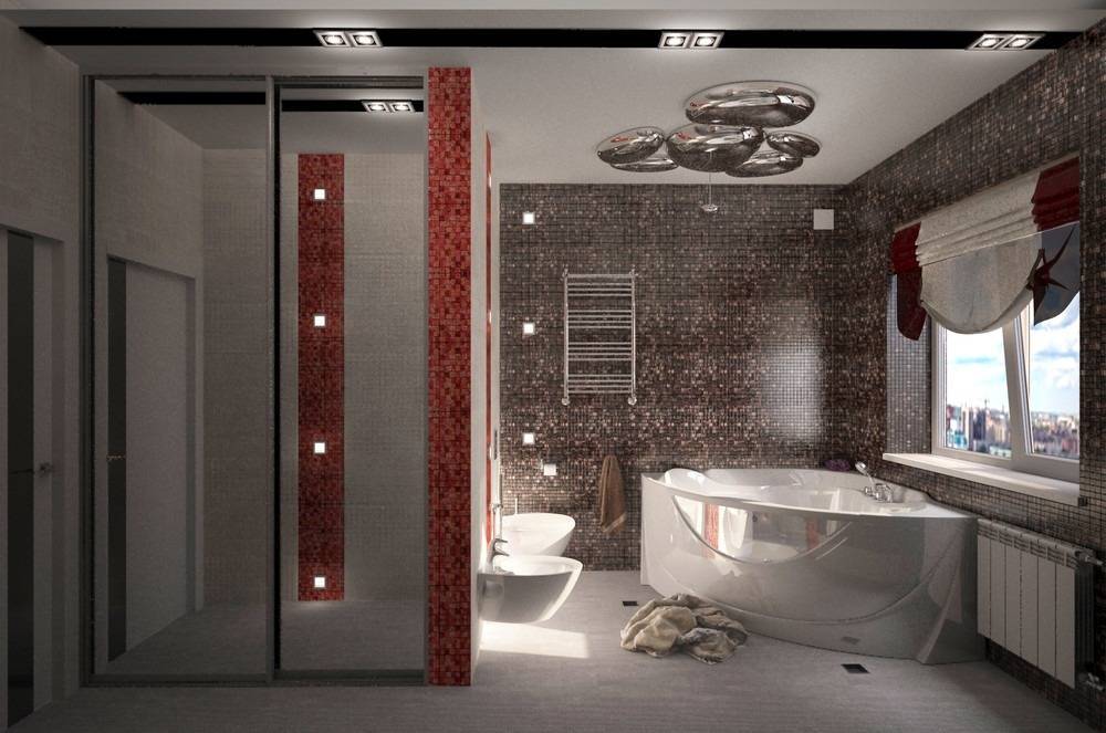 - если помещение имеет достаточные размеры, но нет окна, эксперименты с темными оттенками нежелательны. Любите насыщенные глубокие цвета, позаботьтесь о должном освещении. Зато в большой ванной поместится комплект из большого количества элементов;