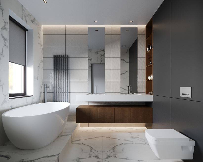 Вообще если разложить дизайн совмещенных ванных на составляющие, вопрос становится довольно простым. Для стильного дизайна достаточно: