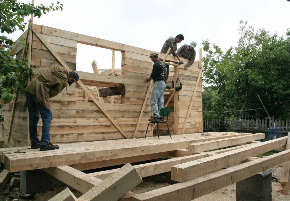 - Никакой техники. При сборке дома не используются тяжелые конструкции, поэтому нет необходимости в подъемных механизмах.
