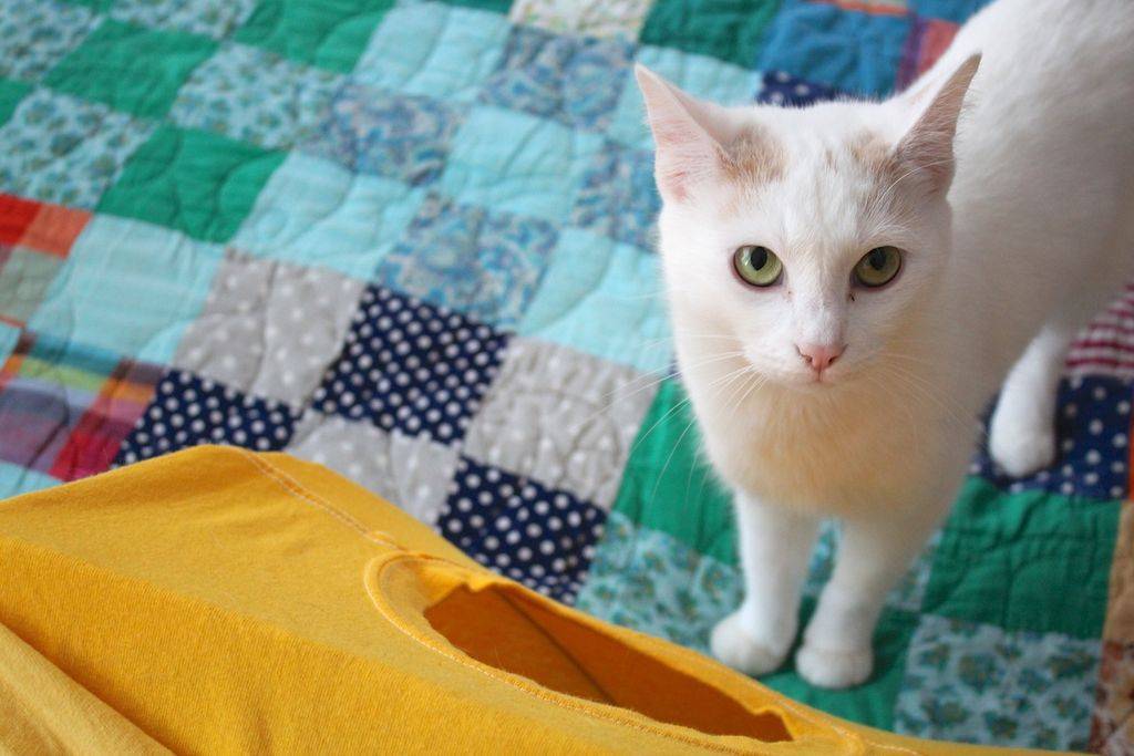 Такую палатку для кошки смастерить может каждый. Понадобится всего лишь яркая футболка, пару вешалок из проволоки и картон.
