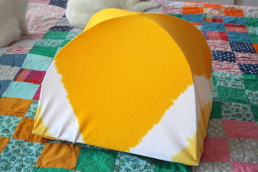 Домик для кошки готов. Внутрь следует положить подушку, чтобы питомцу было комфортно.