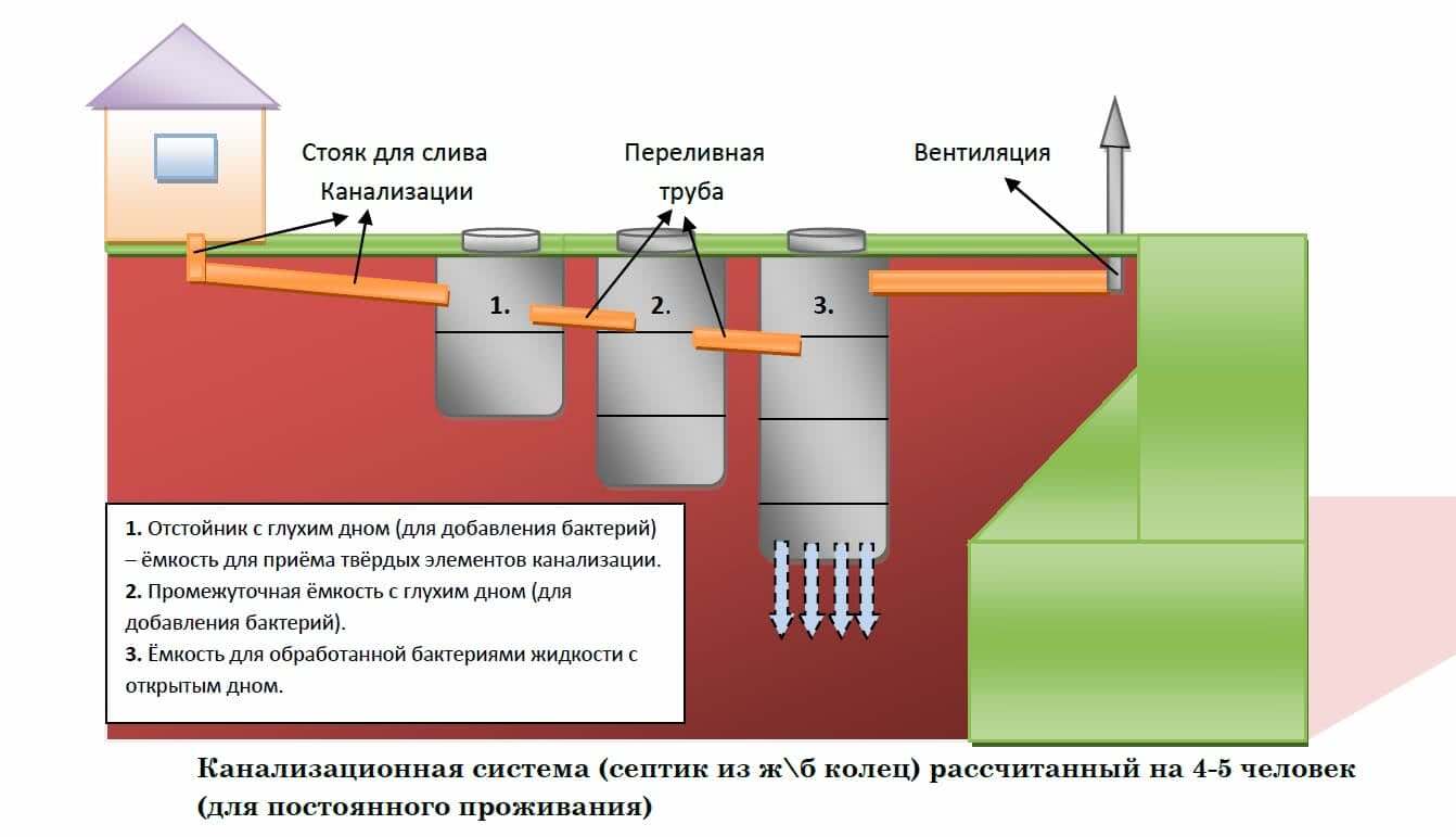 Классическая канализационная система загородного дома: две герметичных емкости и дренаж