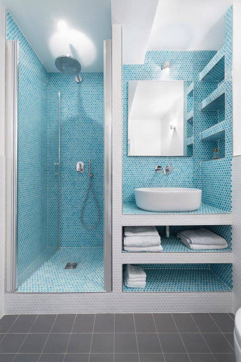 В ванной комнате естественно выглядят голубые, синие, зеленоватые оттенки. Они дарят ощущение свежести, наполняют атмосферу морским бризом.