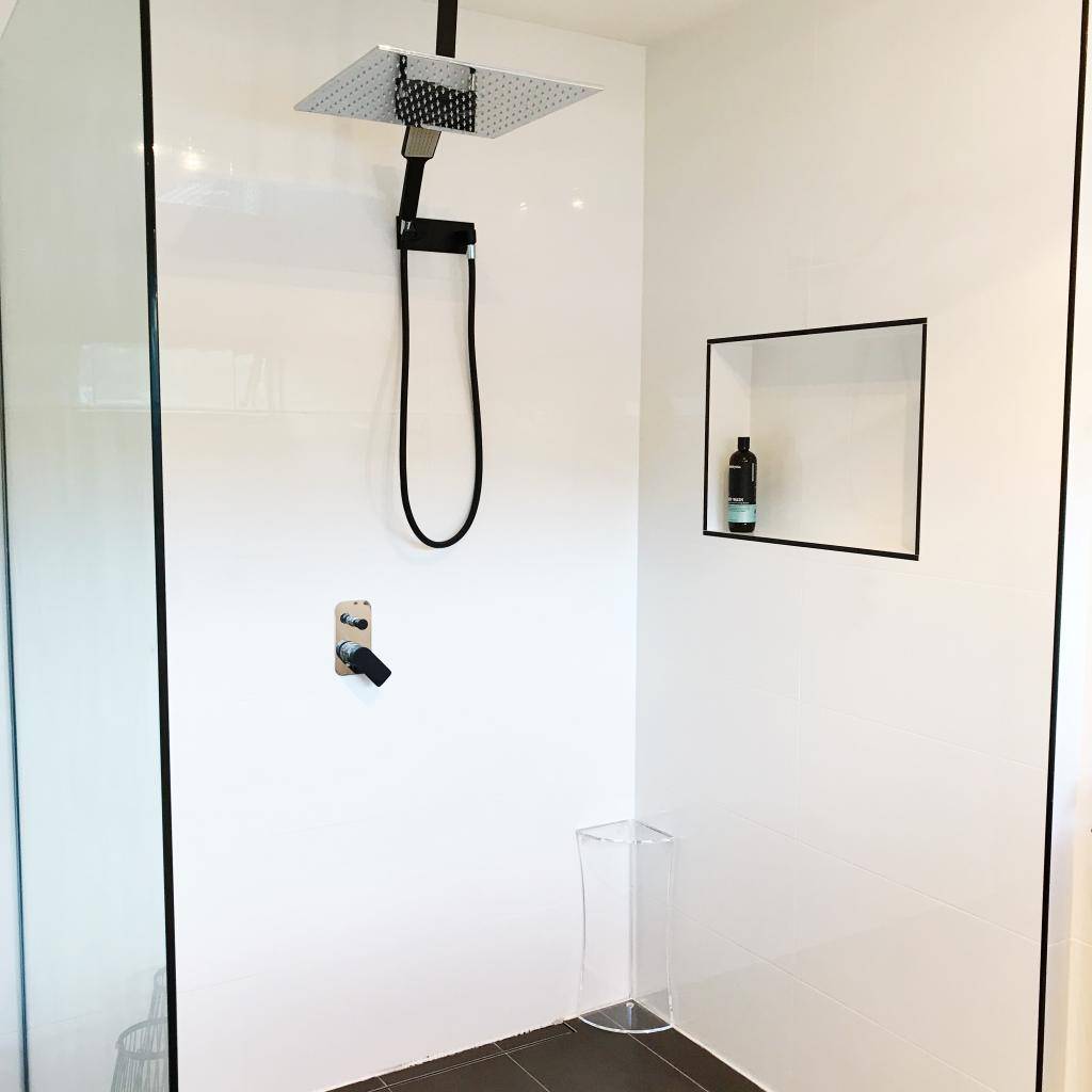 - стена должна быть облицована водостойкой керамической плиткой с такой же затиркой швов, также желательно наличие под плиткой гидроизоляции;