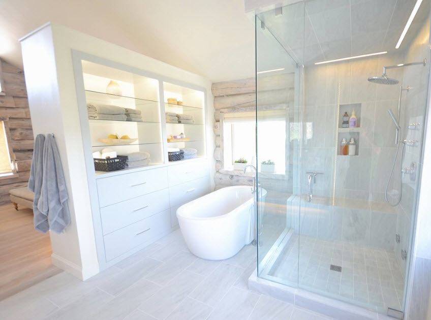 Такие конструкции очень распространены в северных странах, где экономят воду и обычными ванными почти не пользуются. Читайте про ванные в скандинавском стиле.