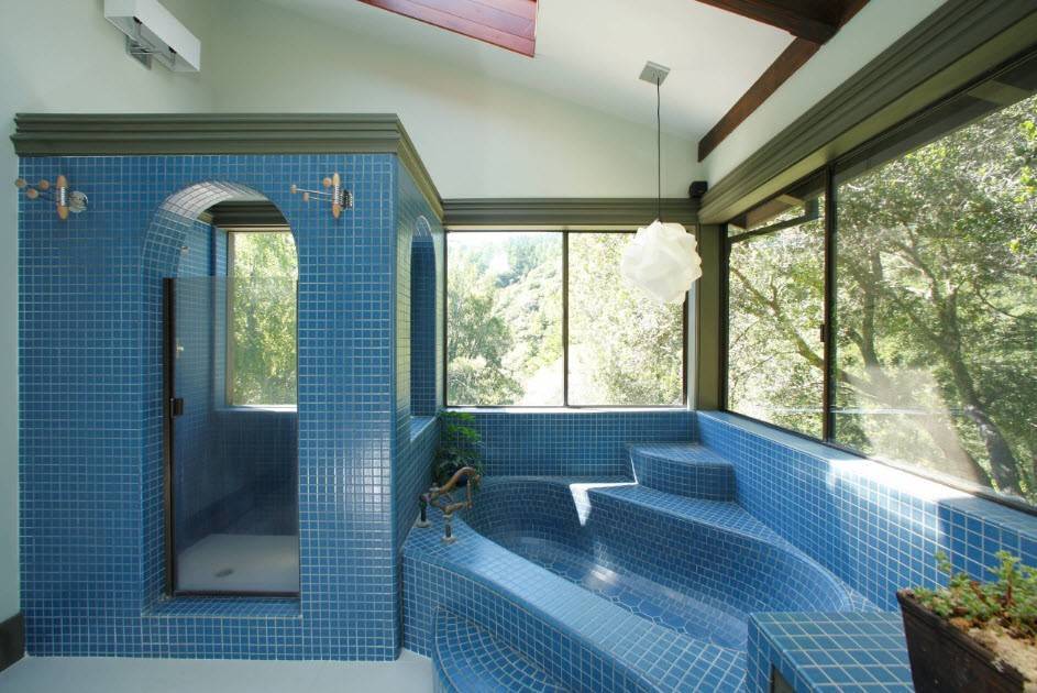 - Использовать для душевой стеклоблоки. Вариант из прошлого. Теоретически, можно стильно обыграть. Хотя я хороших пока не видел.