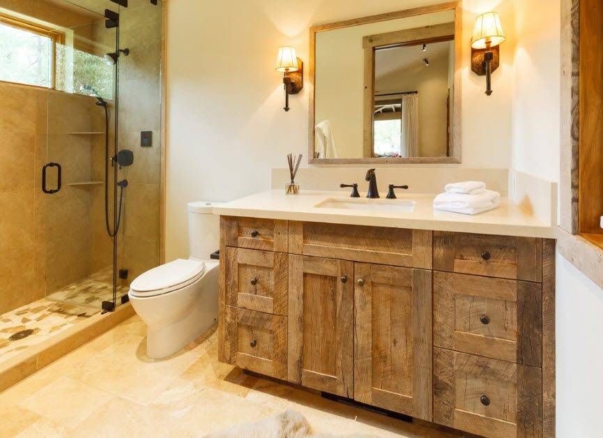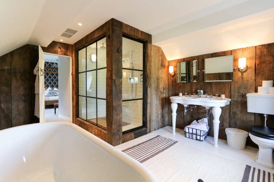 В стиле кантри и при наличии места можно поставить и ванну и кабинку