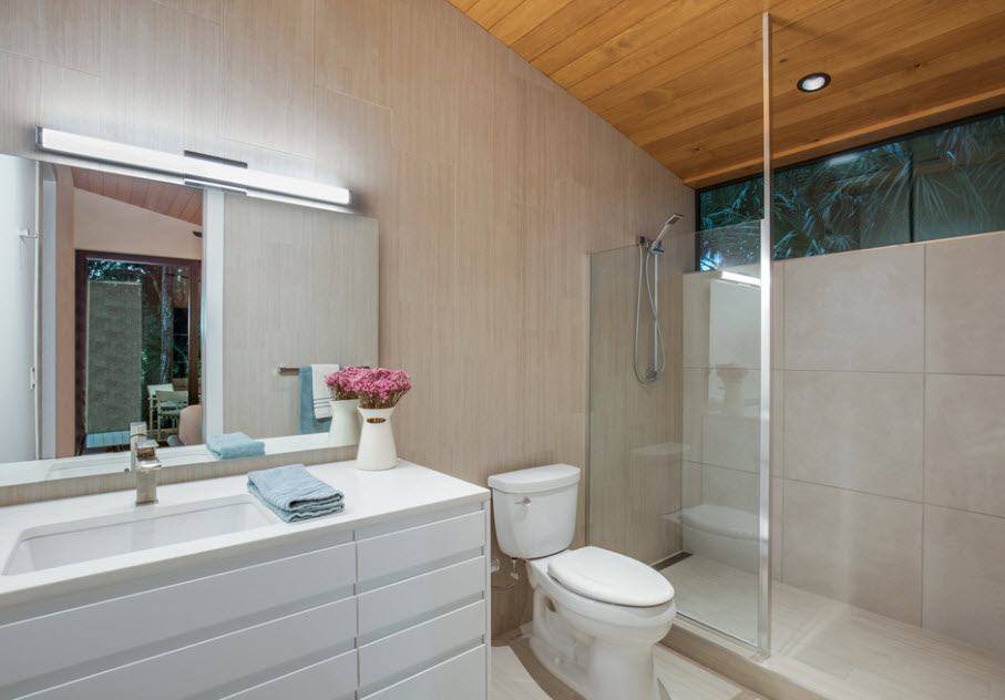 Чтобы ванная с душевой кабиной смотрелась наиболее выигрышно, следует воспользоваться следующими подсказками. Владельцы больших ванных, впрочем, могут учитывать их не так строго.