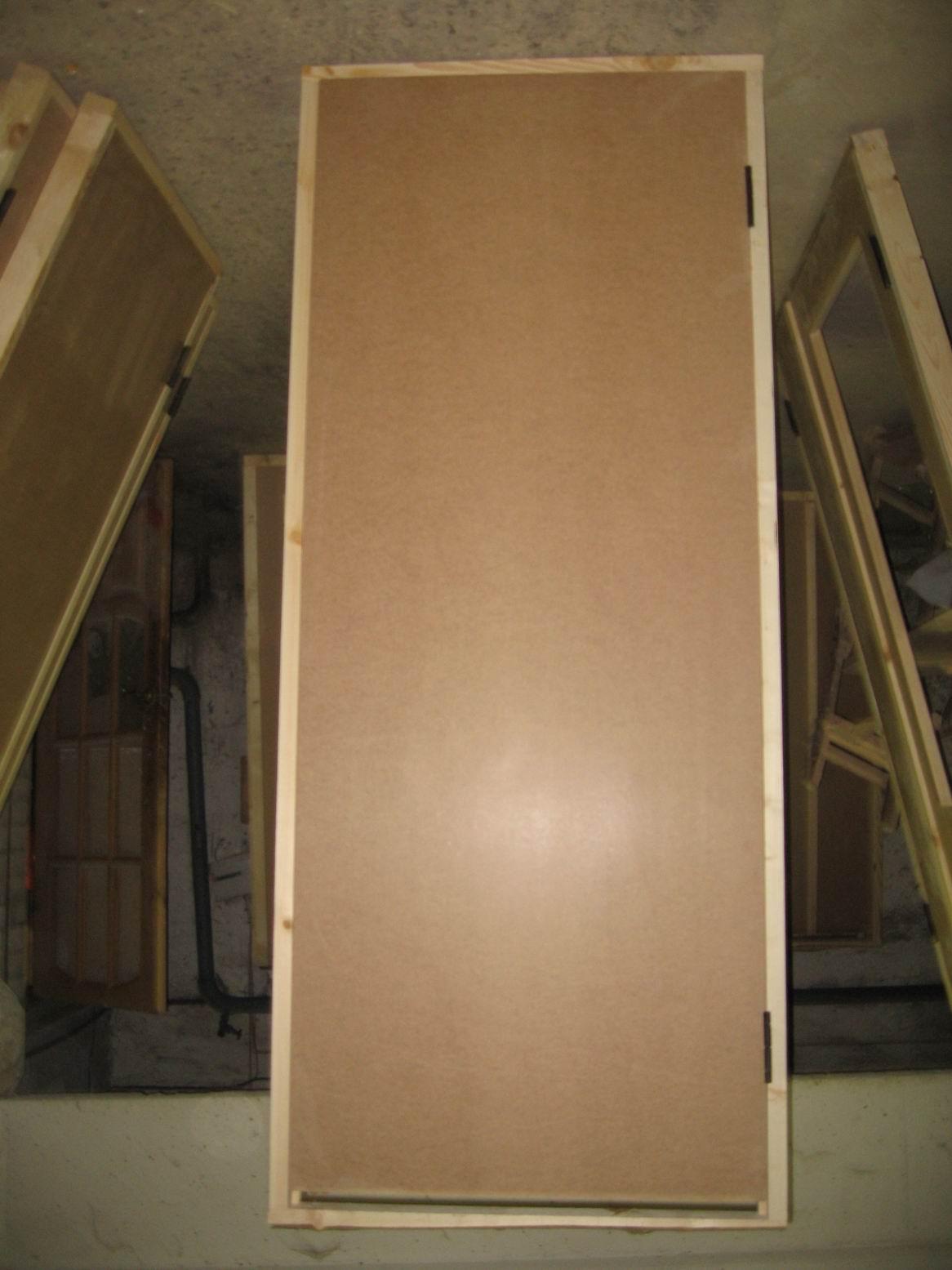 Для этого изделия потребуются два фанерных листа, которые будут крепиться на каркас из брусков и планок. Рамку изготавливают по размерам дверного проема. В одну конструкцию деревянные детали скрепляются саморезами или металлическими пластинами.