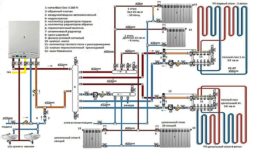 Схема системы отопления на газу