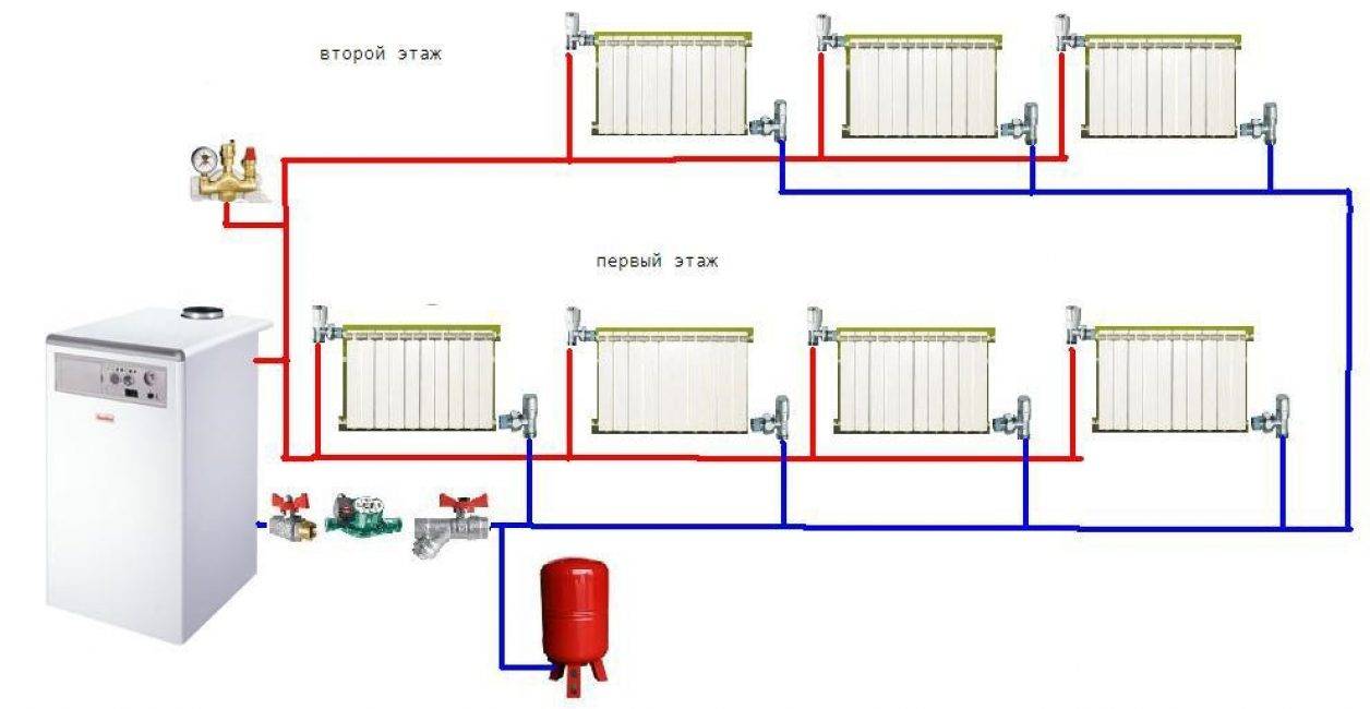 Двухтрубная система отопления с верхней разводкой. Цены на газовые котлы
