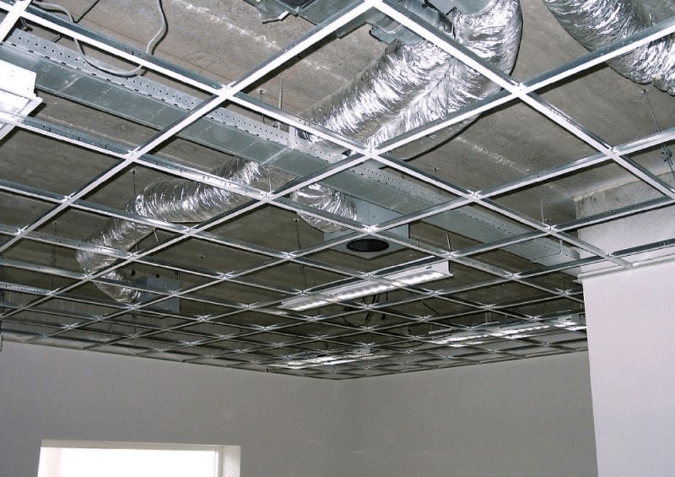 А их общая длина должна быть на 1-2 см короче длины потолка. Установку каждого профиля начинайте с углов – прикручивайте его к подвесам и направляющим при помощи саморезов. Затем закрепляйте середину.