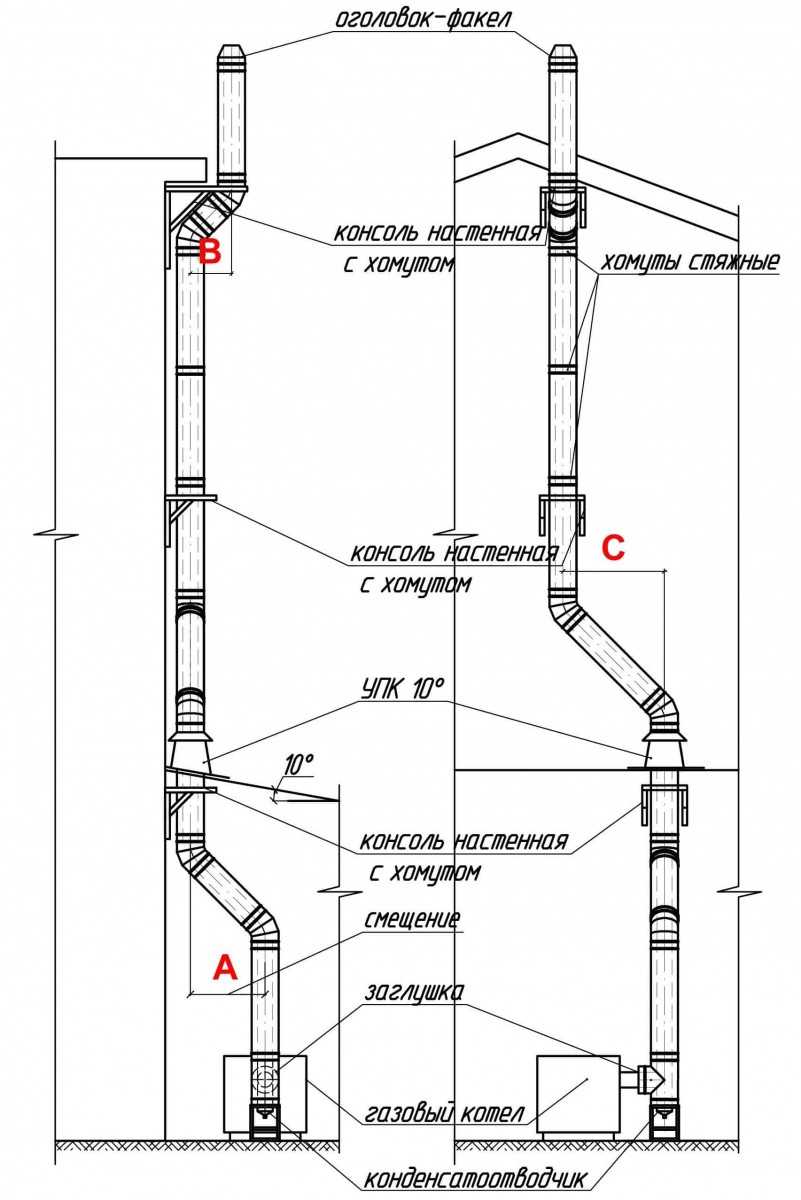 В зависимости от разновидности используемых труб и варианта размещения дымоотводящей системы монтаж будет иметь ряд особенностей: