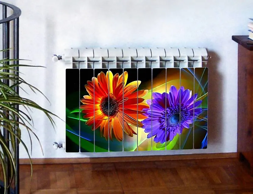 На поверхность стекла наносится любой рисунок по вашему желанию. Это прекрасный декоративный элемент для батарей, но он требует очень аккуратного обращения и ухода.