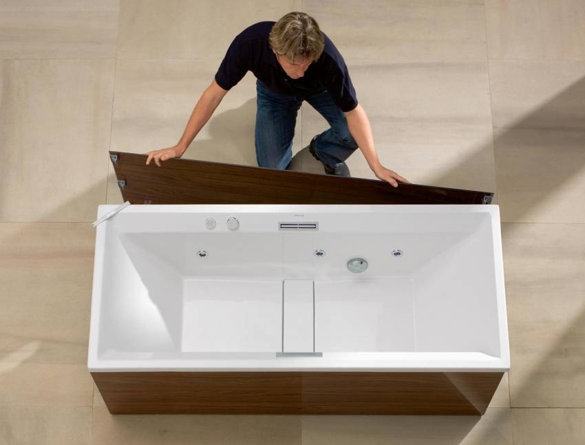 Сейчас в продаже вы встретите акриловые модели, в комплекте с которыми уже идут готовые экраны. Это удобно: размеры точно подогнаны, сборка на самом примитивном уровне, и выглядит ванная сразу после установки вполне прилично. Но вот другие модели, металлические или чугунные, редко когда встречаются с таким дополнением, так что приходится сооружать ограждение самостоятельно.