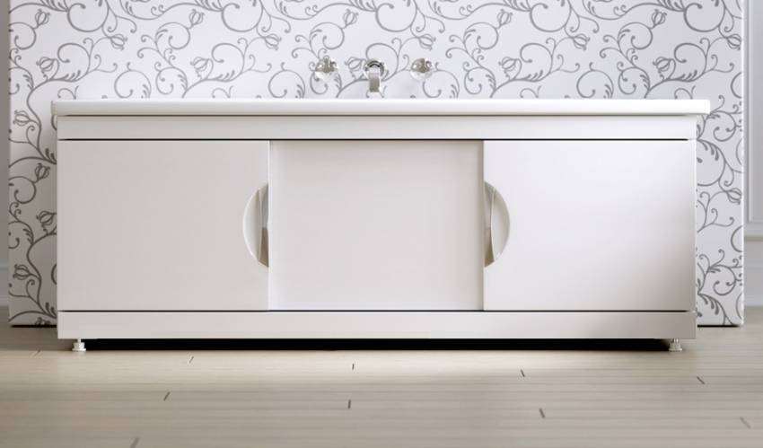 - модель с дверцами позволяет не только защитить коммуникации, но и организовать под ванной небольшой склад для бытовой химии и других предметов;