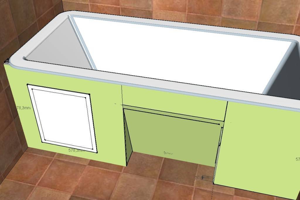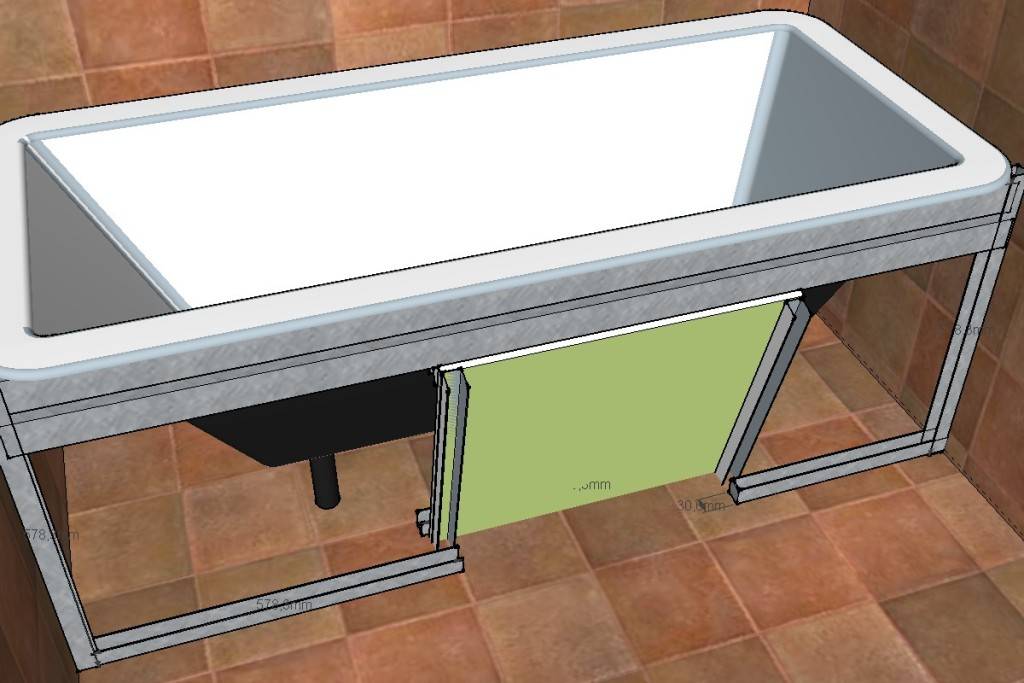 Чтобы сделать дверки под ванну, обладающую нестандартной конфигурацией, необходимо точно повторить ее форму. В качестве материала для каркасной конструкции можно применить металлический оцинкованный профиль. Что касается обшивки, то для ее изготовления хорошо подходит плотный экструдированный пенополистирол, обладающий подходящими характеристиками.