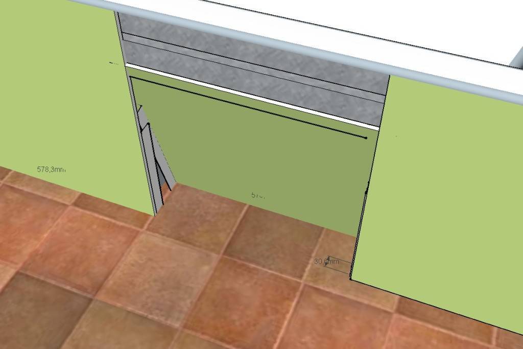 - Верхний брусок крепят к основным опорам при помощи уголков и шурупов. Если планируется раздвижной тип, то дополнительную стойку ставят так, чтобы она не мешала ходу панелей (можно обойтись и без нее, если пространство планируется открывать на всю ширину). Для неподвижной панели желательно поставить несколько дополнительных вертикалей на длинной стороне. Шаг деталей — 50-60 см.