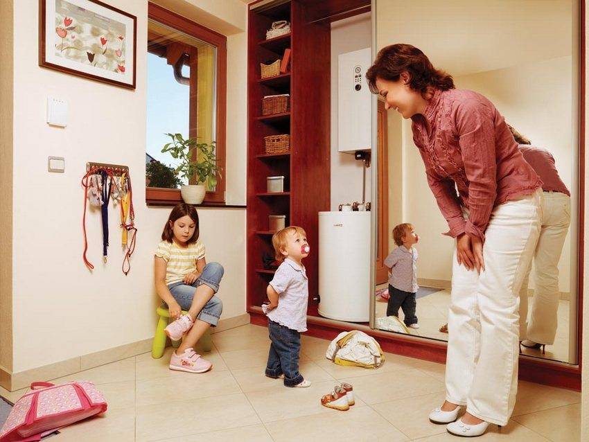 Перед тем как установить котёл, для него находят подходящее место. Необязательно выделять отдельное помещение, так как большинство современных моделей довольно компактные и презентабельные. Зачастую такие приборы устанавливают в ванной комнате, в подсобном помещении или подвале дома — в непосредственной близости к системе труб отопления. Главное — чтобы стены в помещении не были обшиты горючими материалами.