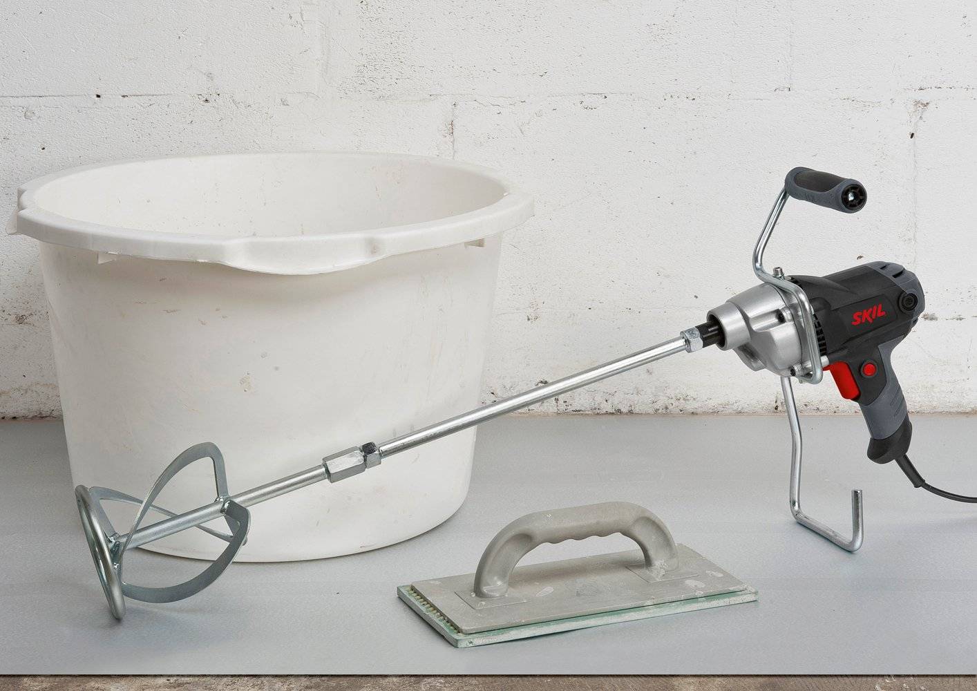 Для смешивания удобнее использовать строительный миксер, который произведет качественный замес, и раствор получится нужной консистенции.