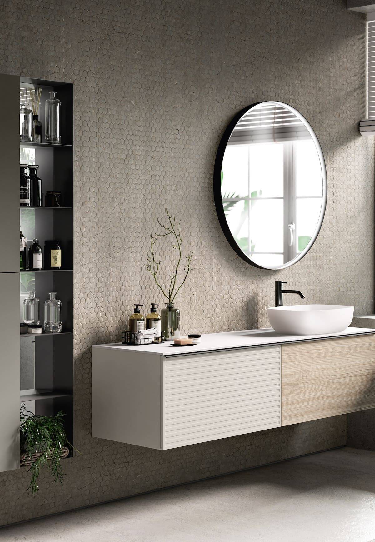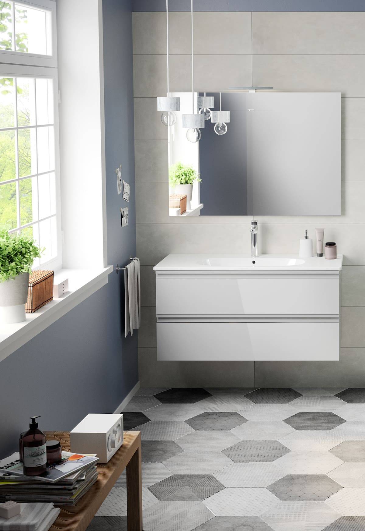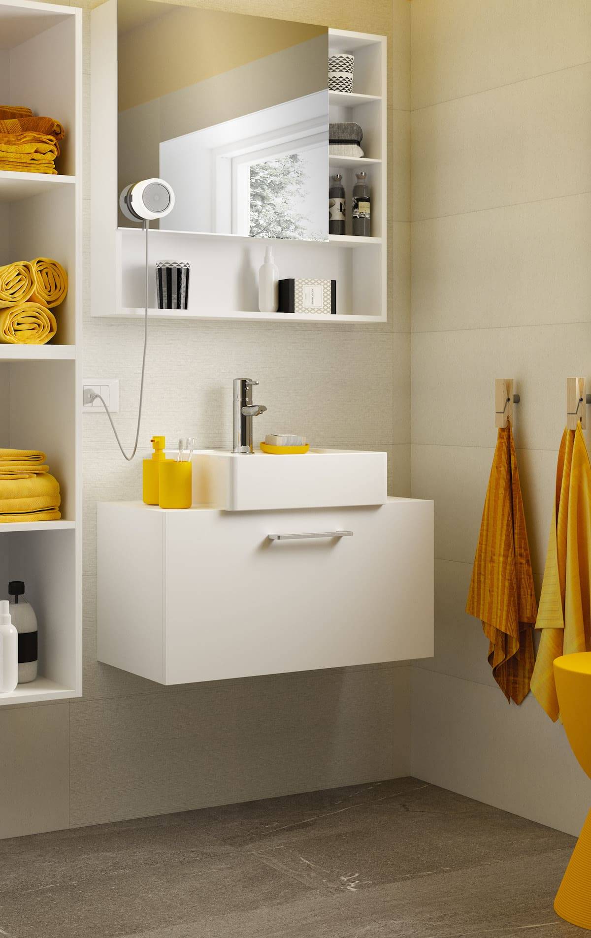 Одна из горячих тенденций — плавающие шкафы для ванных комнат, которые выглядят стильно и просто. Это, прежде всего, очень практичное решение. Мы освобождаем место на полу, благодаря чему такую мебель легко содержать в чистоте. Это современное решение поможет зрительно увеличить размеры помещения, максимально эффективно его использовать.